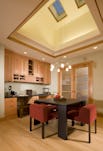 This home has its inspiration rooted in Japanese elements: from the Shoji doors designed and fabricated by a local craftsman to the Tatami Room and the soaking tub in the Master Bathroom. The clients wanted to create a warm home with unique elements, such as the fireplace wall, the "block" bar counter in the kitchen, the various skylight details and the tile designs. The project resulted in a very comfortable home with high function and mindful use of space. (This project was designed by Esin Karliova while working at Remodel West, a Design-Build Company.)